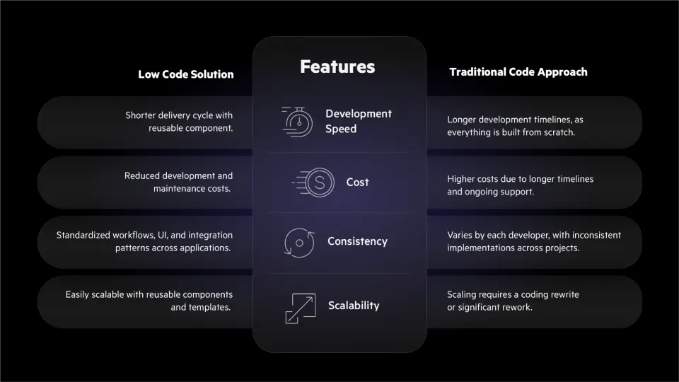 Faster Development: Prebuilt modules in low-code solutions can cut weeks or months off implementation timelines.